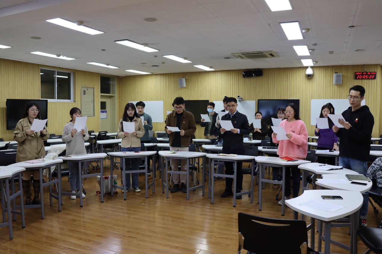 2022年3月9日晚19:00,医学技术学院2021级硕士生党支部在研究生教学楼104召开2021级硕士生党支部组织生活会暨“我的入党故事”分享活动。会议由支部书记王妮主持,支部全体党员、积极分子参加。医学技术学院党委副书记、副院长章涛出席。